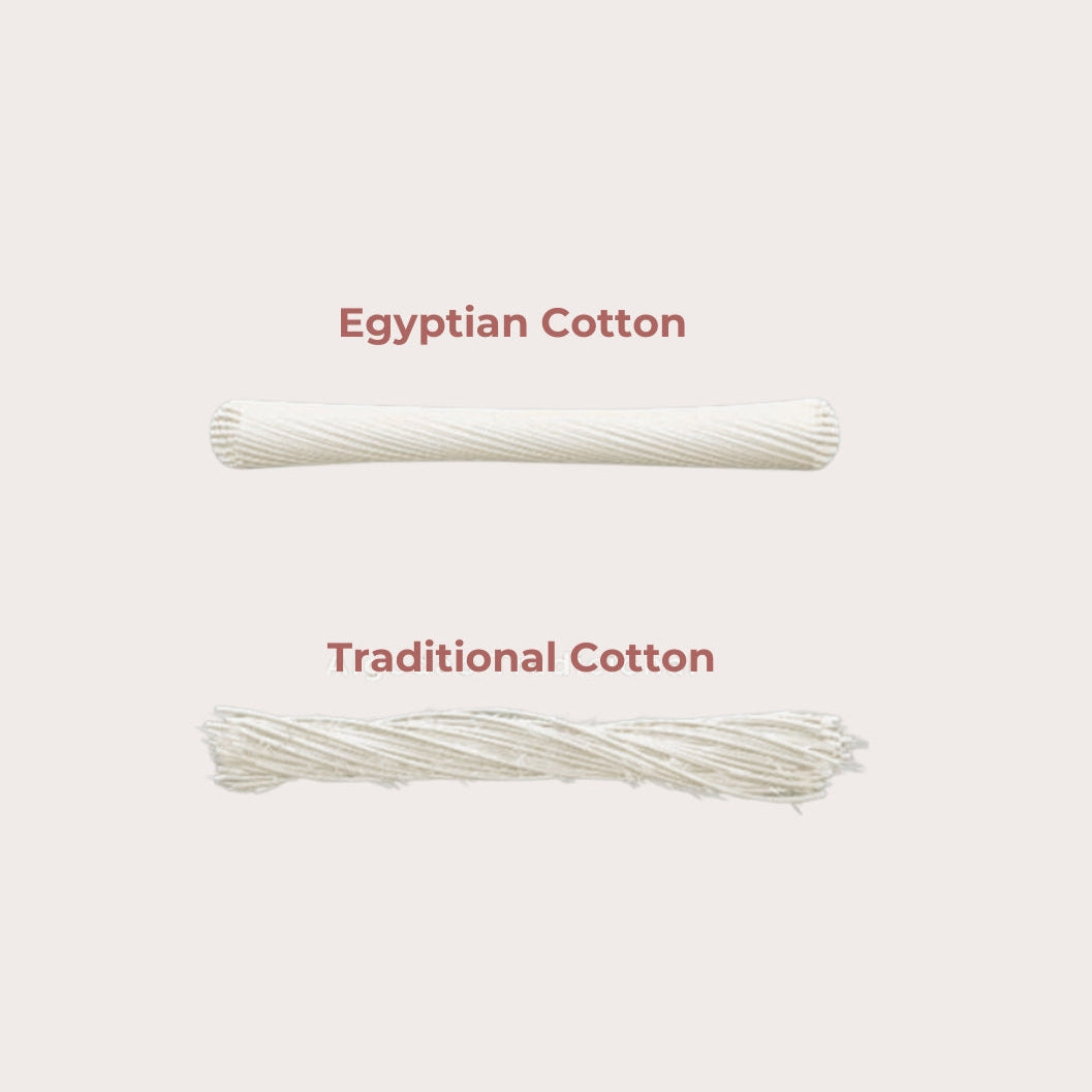 Egyptian cotton is known for its long, fine fibers, measuring 30 to 50 centimeters, making it softer, stronger, and more durable than traditional cotton, which has fibers up to 30 centimeters.